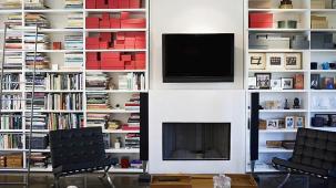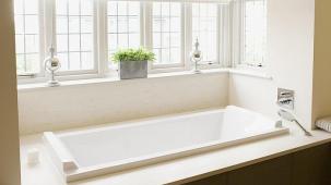 This apartment with nice shades of blue and a beautiful bathroom will help you to relax after work.